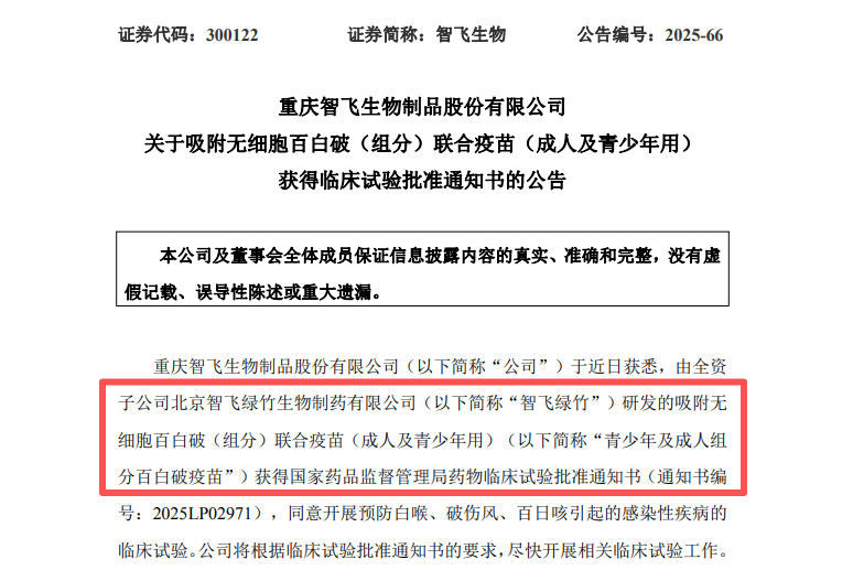 近日,智飞生物全资子公司北京智飞绿竹生物制药有限公司(以下简称“智飞绿竹”)研发的吸附无细胞百白破(组分)联合疫苗(成人及青少年用)(以下简称“青少年及成人组分百白破疫苗”)正式获得国家药品监督管理局临床试验许可,标志着我国在青少年及成人百白破免疫保护领域迈出关键一步。天勤生物武汉分公司为该项目提供了全套毒理学研究服务,以专业能力为疫苗的临床获批精准护航。